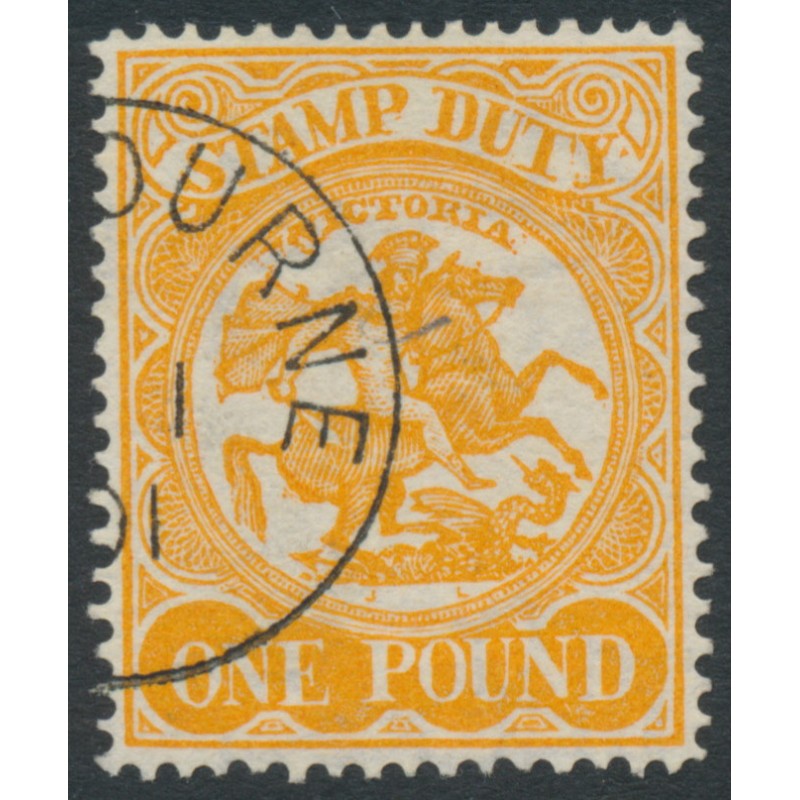 AUSTRALIA / VIC - 1884 £1 orange on yellow Stamp Duty, perf. 12½, CTO – SG # 262a