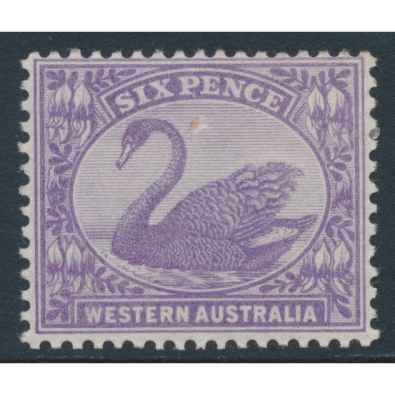 AUSTRALIA / WESTERN AUSTRALIA / W.A. 1906 6d bright violet Swan, W crown A watermark, mint hinged – no thins, tears or bends. SG Cat. # 115