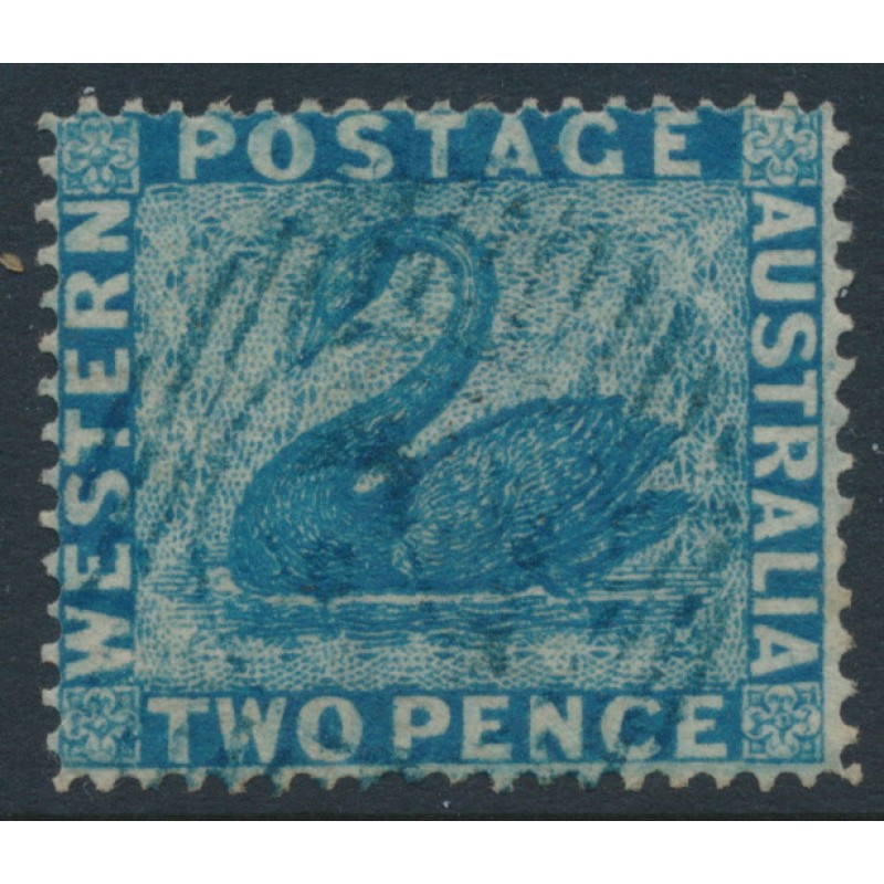 AUSTRALIA / WESTERN AUSTRALIA / W.A. 1861 2d blue Swan, perf. 15:15, swan watermark, used – no thins, tears or bends. SG Cat. # 41