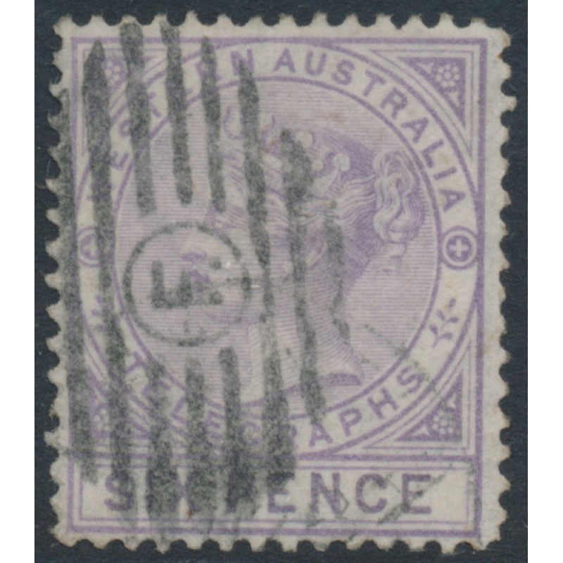 AUSTRALIA / WESTERN AUSTRALIA / W.A. 1879 6d lilac Telegraph Stamp, perf. 14:14, crown CC watermark, postally used – no thins, tears or bends. SG Cat. # T2