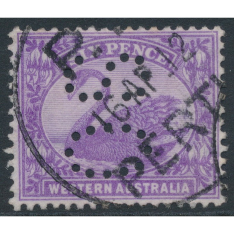 AUSTRALIA / WESTERN AUSTRALIA / W.A. 1906 6d bright violet Swan, W crown A watermark, perforated OS, used – no thins, tears or bends. SG Cat. # 115