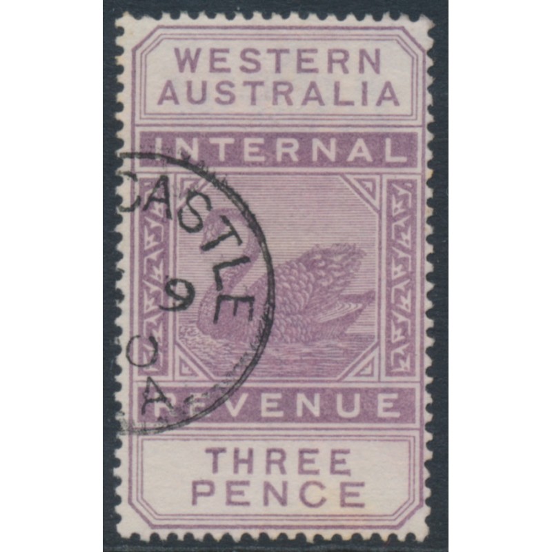 AUSTRALIA / WESTERN AUSTRALIA / W.A. 1897 3d dull purple Swan Internal Revenue, W crown A watermark, postally used – no thins, tears or bends. SG Cat. # F20