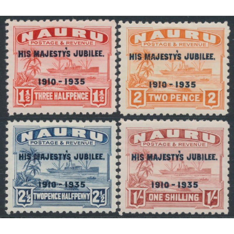 NAURU 1935 1½d to 1/- Freighter overprinted for King George V Silver Jubilee set of 4, mint hinged – no thins, tears or bends. SG Cat. # 40-43