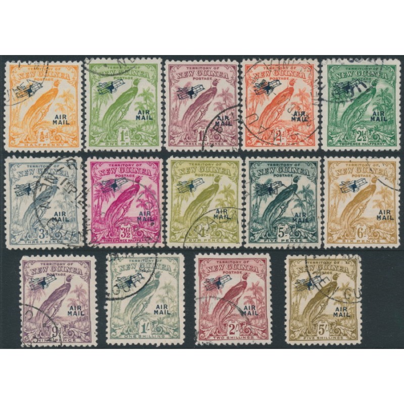 NEW GUINEA 1932 ½d to 5/- Bird of Paradise short set of 14, without dates, overprinted AIR MAIL, used – no thins, tears or bends. SG Cat. # 190-201