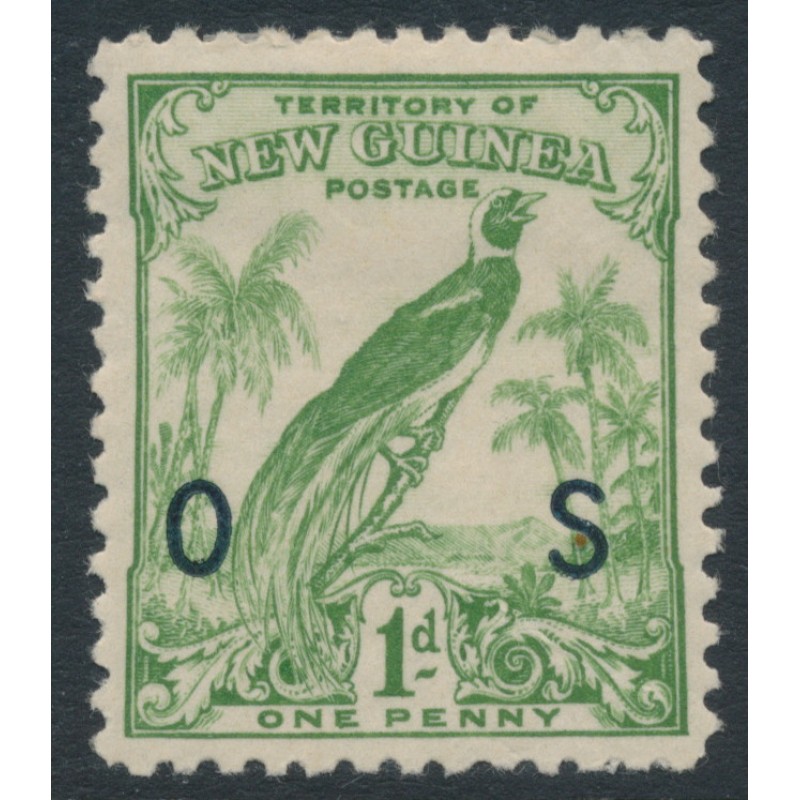 NEW GUINEA 1932 1d green Bird of Paradise, no dates, overprinted OS, mint hinged – no thins, tears or bends. SG Cat. # O42
