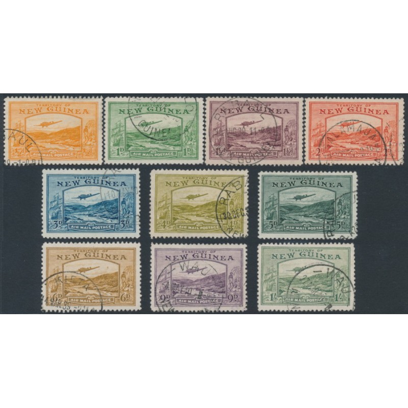 NEW GUINEA 1939 ½d to 1/- Bulolo Goldfields short set of 10, used – no thins, tears or bends. SG Cat. # 212-221