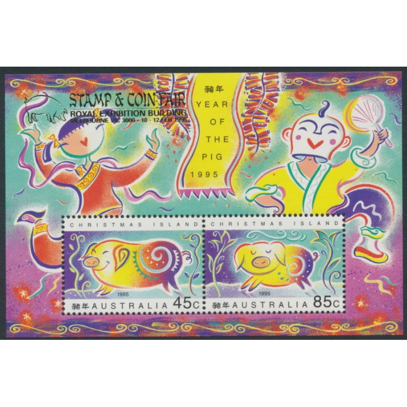 CHRISTMAS ISLAND - 1995 Chinese New Year (Pig) M/S, Melbourne o/p, MNH – SG # MS402