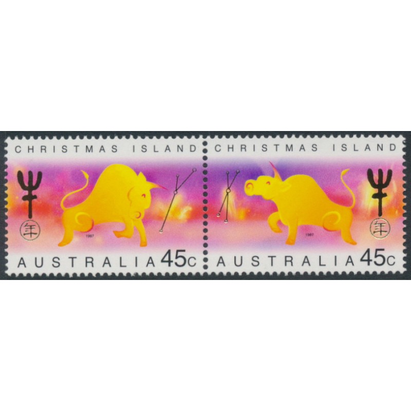 AUSTRALIA / CHRISTMAS ISLAND 1997 45c Chinese Year of the Ox horizontal se-tenant pair, mint never hinged – no thins, tears or bends. SG Cat. # 434a