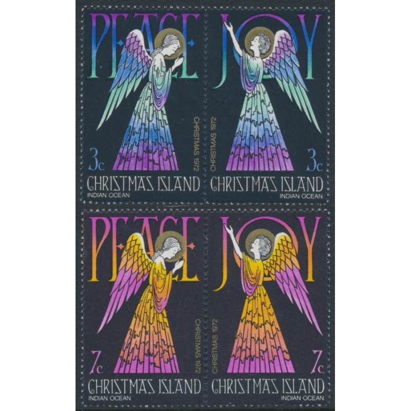 CHRISTMAS ISLAND - 1972 3c & 7c Christmas pairs set of 2, MNH – SG # 53a+55a
