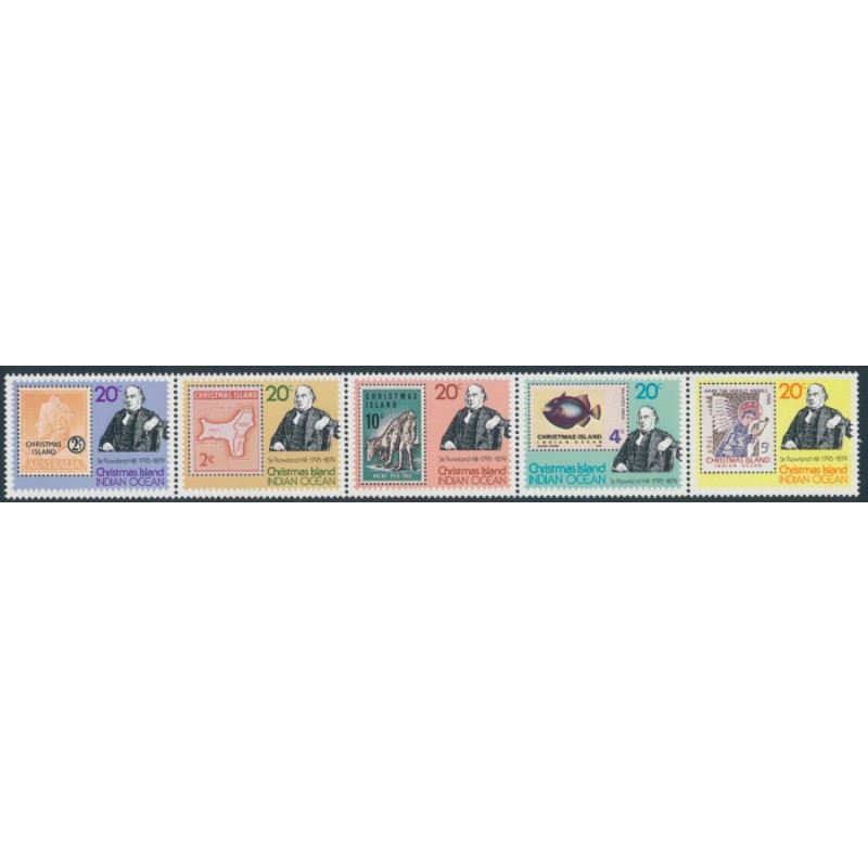 AUSTRALIA / CHRISTMAS ISLAND 1979 20c Sir Roland Hill horizontal se-tenant strip of 5, mint never hinged – no thins, tears or bends. SG Cat. # 113a
