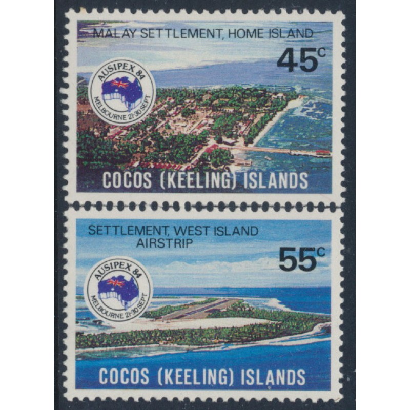 AUSTRALIA / COCOS (KEELING) ISLANDS 1984 45c & 55c Ausipex set of 2, mint never hinged – no thins, tears or bends. SG Cat. # 119-120
