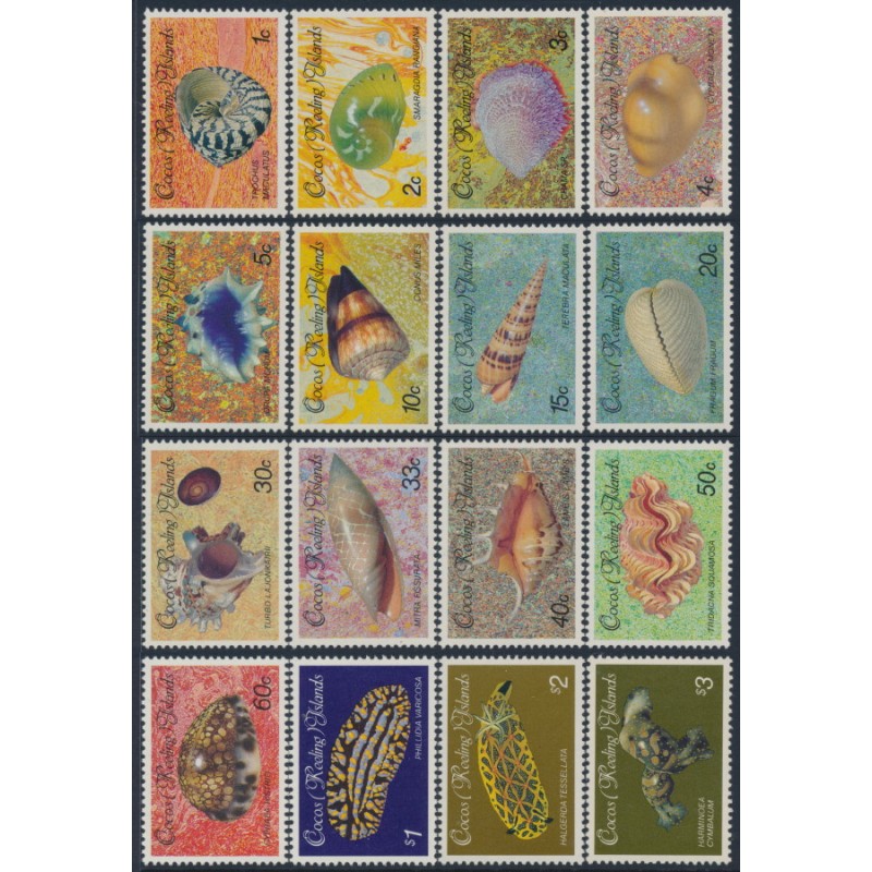 AUSTRALIA / COCOS (KEELING) ISLANDS 1985-1986 1c to $3 Shells & Molluscs set of 16, mint never hinged – no thins, tears or bends. SG Cat. # 135-150