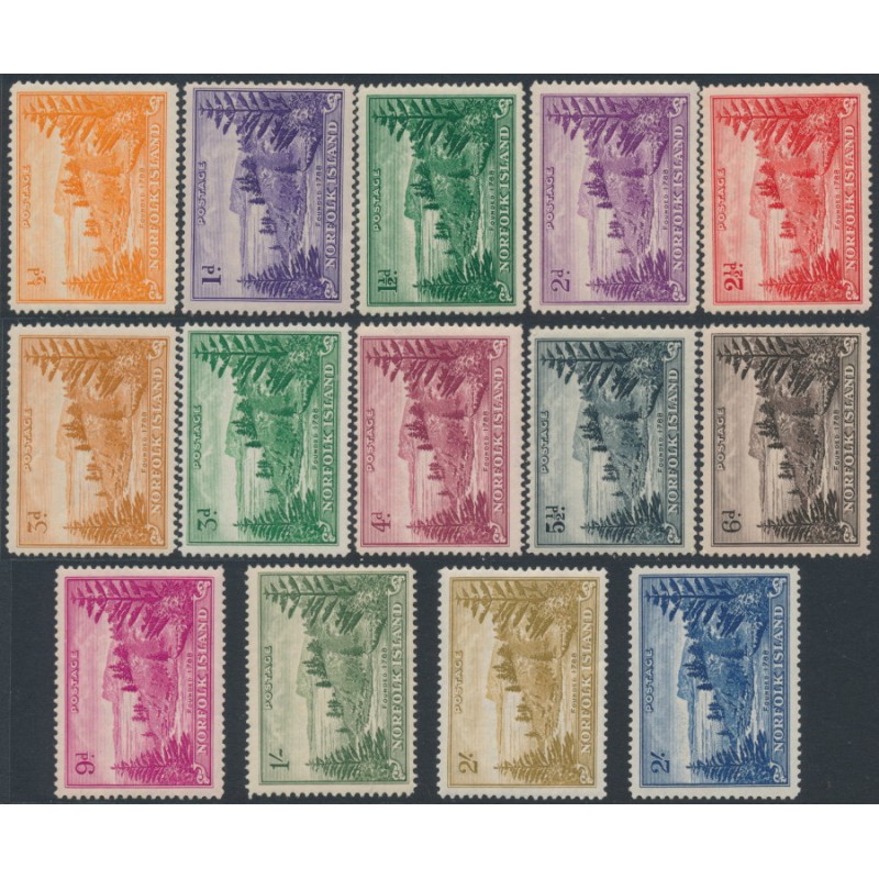 AUSTRALIA / NORFOLK ISLAND 1947-1959 ½d to 2/- Ball Bay set of 14, mint hinged – no thins, tears or bends. SG Cat. # 1-12 + 6a + 12a
