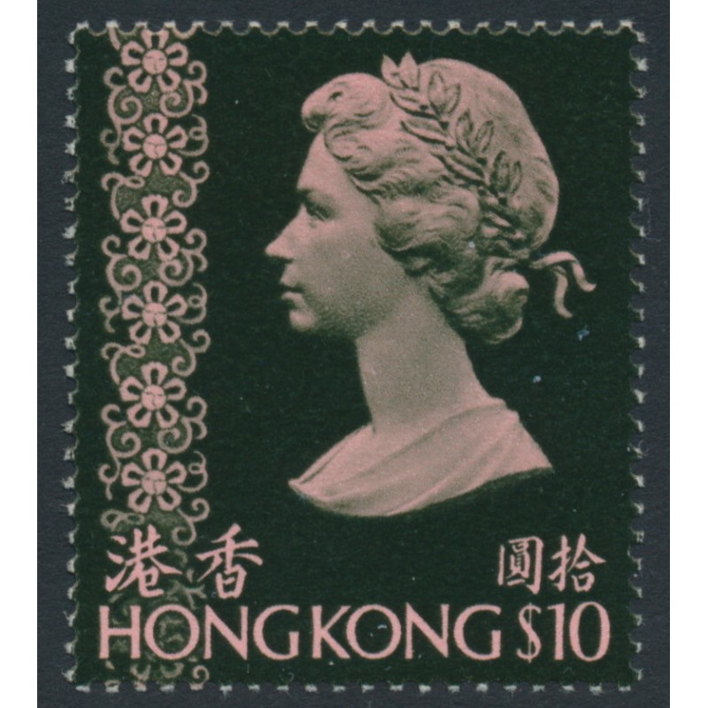 HONG KONG / 香港 1976 $10 pink/deep blackish olive QEII definitive, no watermark, mint never hinged – no thins, tears or bends. SG Cat. # 352