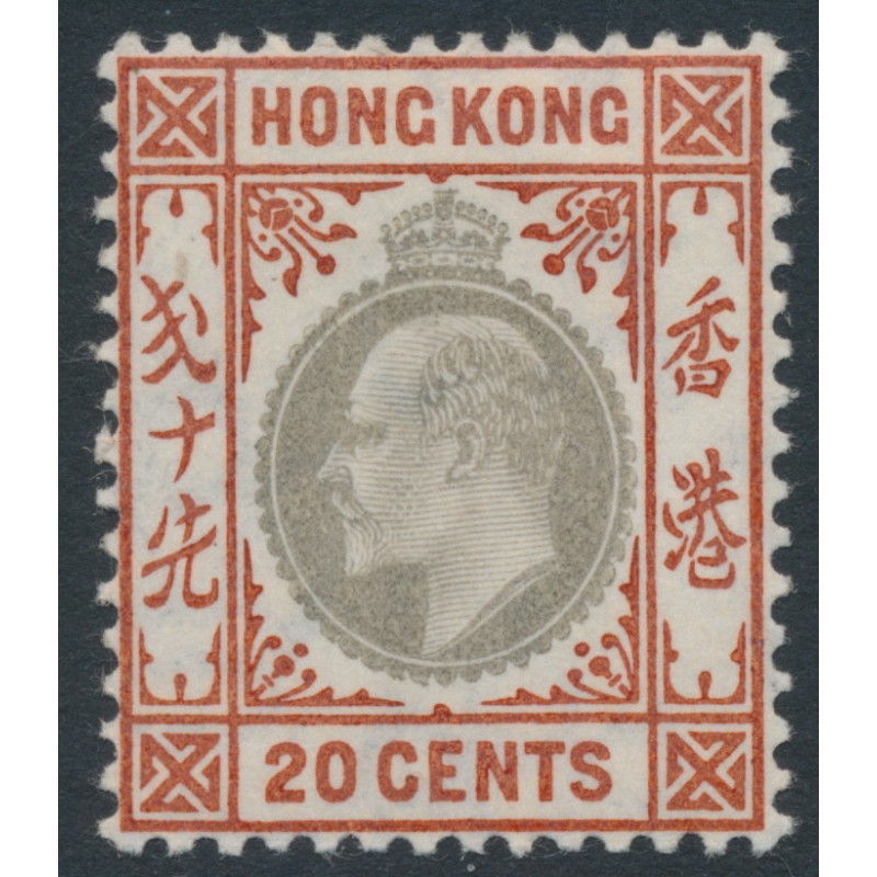 HONG KONG / 香港 1906 20c slate/chestnut King Edward VII definitive, chalk-surfaced paper, multi crown CA watermark, mint hinged – no thins, tears or bends. SG Cat. # 83a