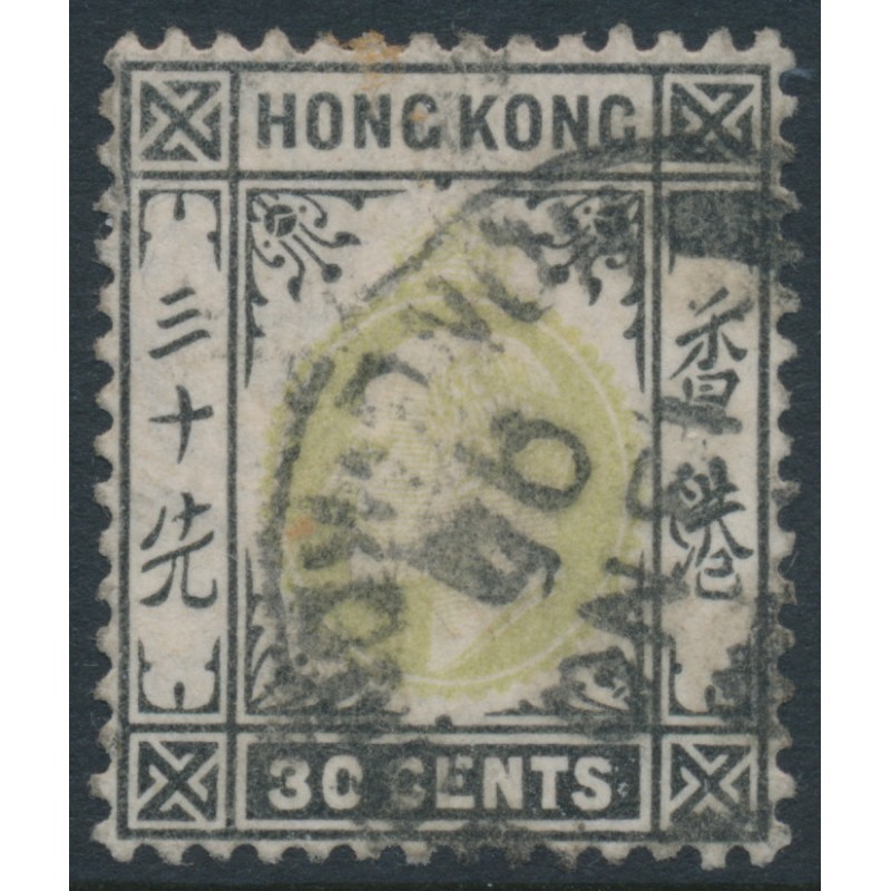 HONG KONG / 香港 1903 30c dull green/black King Edward VII, single crown CA watermark, used – no thins, tears or bends. SG Cat. # 70