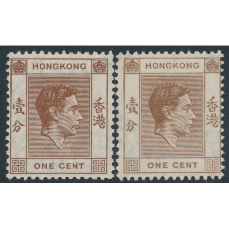 HONG KONG / 香港 1938 1c brown & 1c pale brown King George VI definitives, mint never hinged – no thins, tears or bends. SG Cat. # 140 + 140a