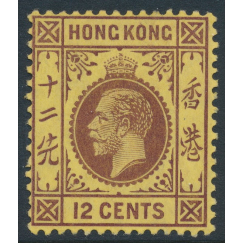 HONG KONG / 香港 1912 12c purple on yellow King George V, multi crown CA watermark, mint hinged – no thins, tears or bends. SG Cat. # 106