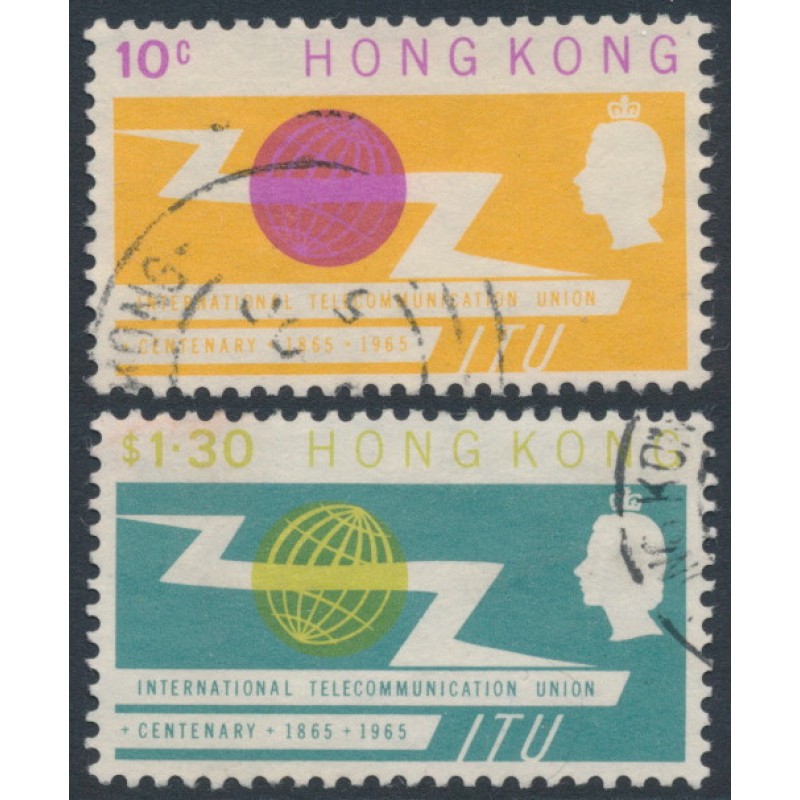 HONG KONG / 香港 1965 10c purple/yellow & $1.30 yellow/green ITU Centenary set of 2, used – no thins, tears or bends. SG Cat. # 214-215