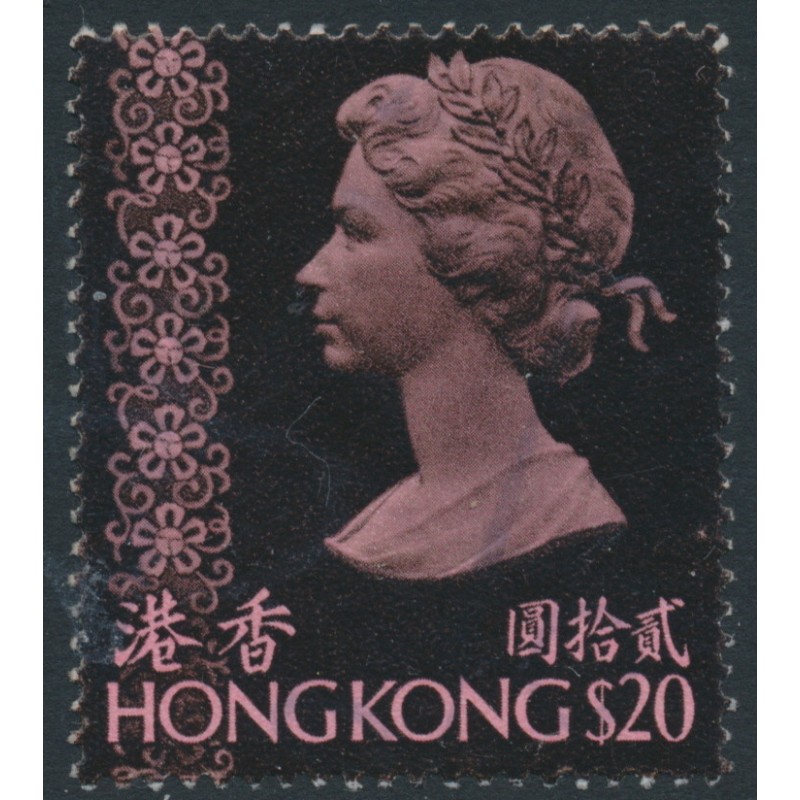 HONG KONG / 香港 1978 $20 pink/brownish black Queen Elizabeth II, crown CA watermark (SG type = W14), used – no thins, tears or bends. SG Cat. # 324e