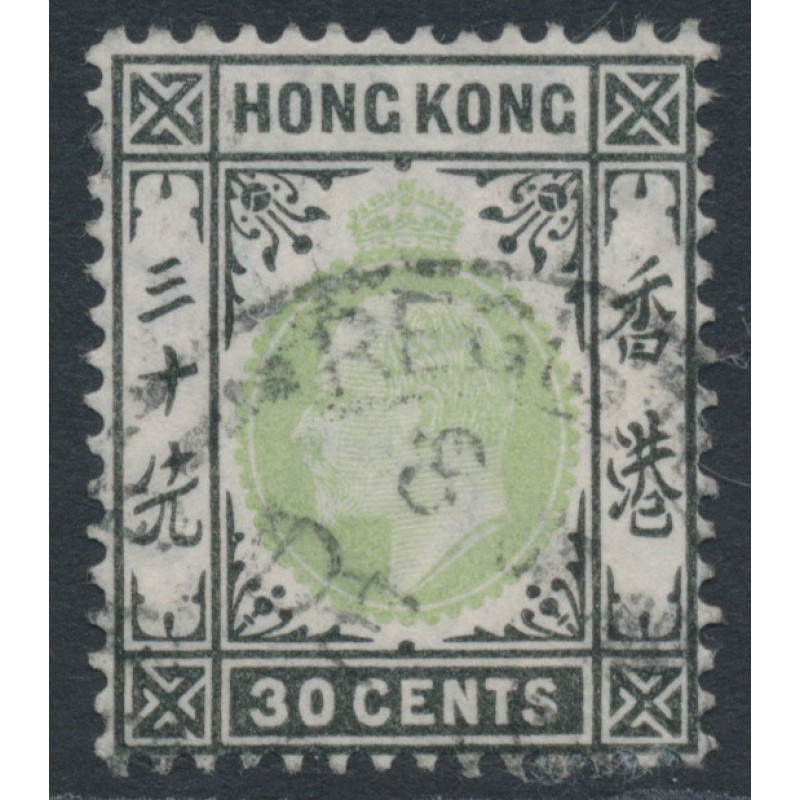 HONG KONG / 香港 1904 30c dull green/black King Edward VII, on ordinary paper, multi crown CA watermark, used – no thins, tears or bends. SG Cat. # 84