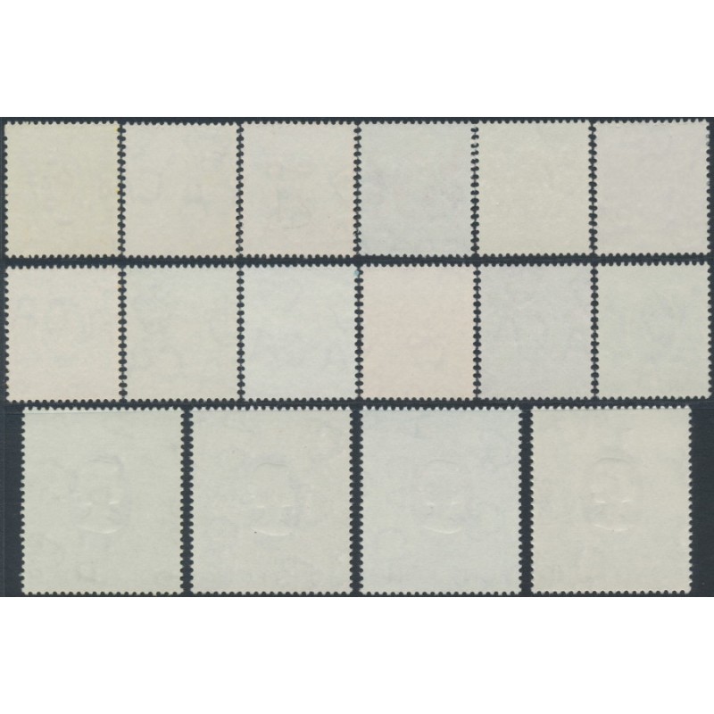 1982 10c to $50 QEII definitives set of 16, diagonal crown CA watermark, mint never hinged – no thins, tears or bends.