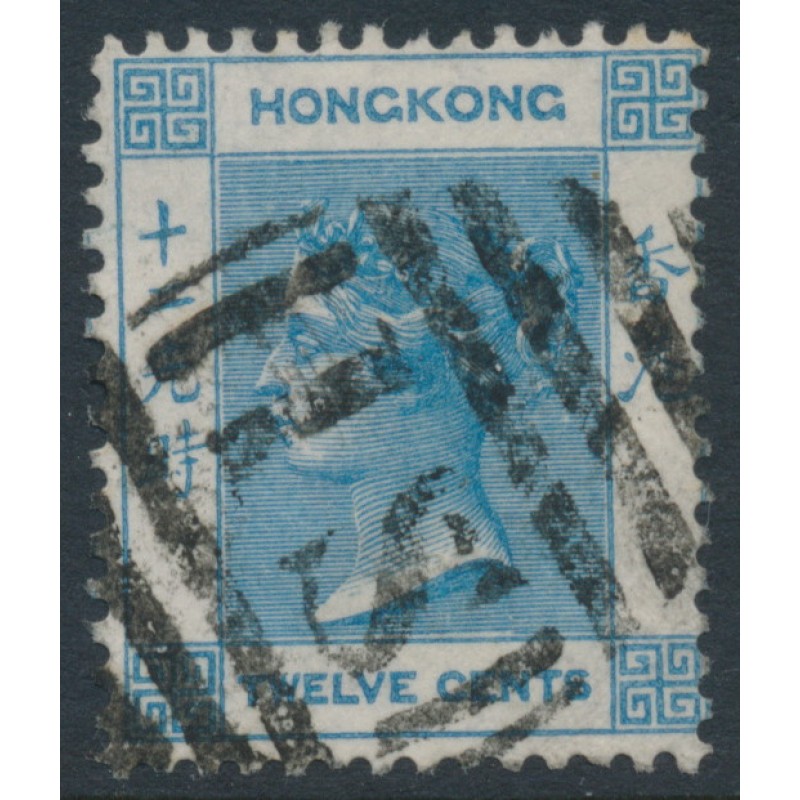 HONG KONG / 香港 1865 12c deep blue Queen Victoria, crown CC watermark, used – has an S1 cancel (= Shanghai / 上海, China) no thins, tears or bends. SG Cat. # 12a / Z776