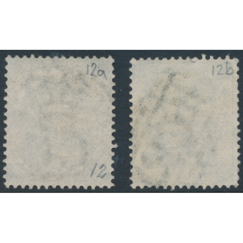 HONG KONG / 香港 1865 12c pale blue & deep blue Queen Victoria, crown CC watermark, used – no thins, tears or bends. SG Cat. # 12a + 12b