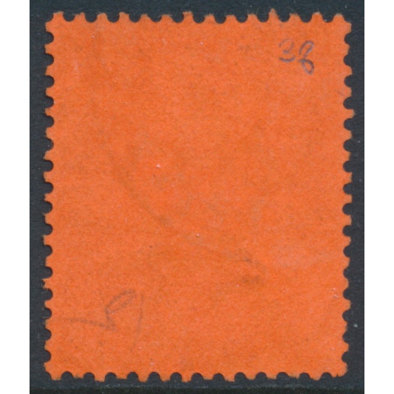HONG KONG / 香港 1891 10c purple on red Queen Victoria, crown CA watermark, used – has a partial SINGAPORE cancel, no thins, tears or bends. SG Cat. # 38