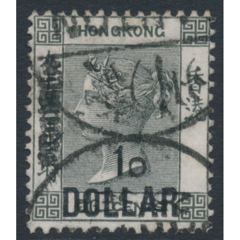 HONG KONG / 香港 1898 $1 on 96c black Queen Victoria, used – has a partial CANTON cancel (= Guangzhou / 廣州 / 广州), no thins, tears or bends. SG Cat. # 52 (Z176)