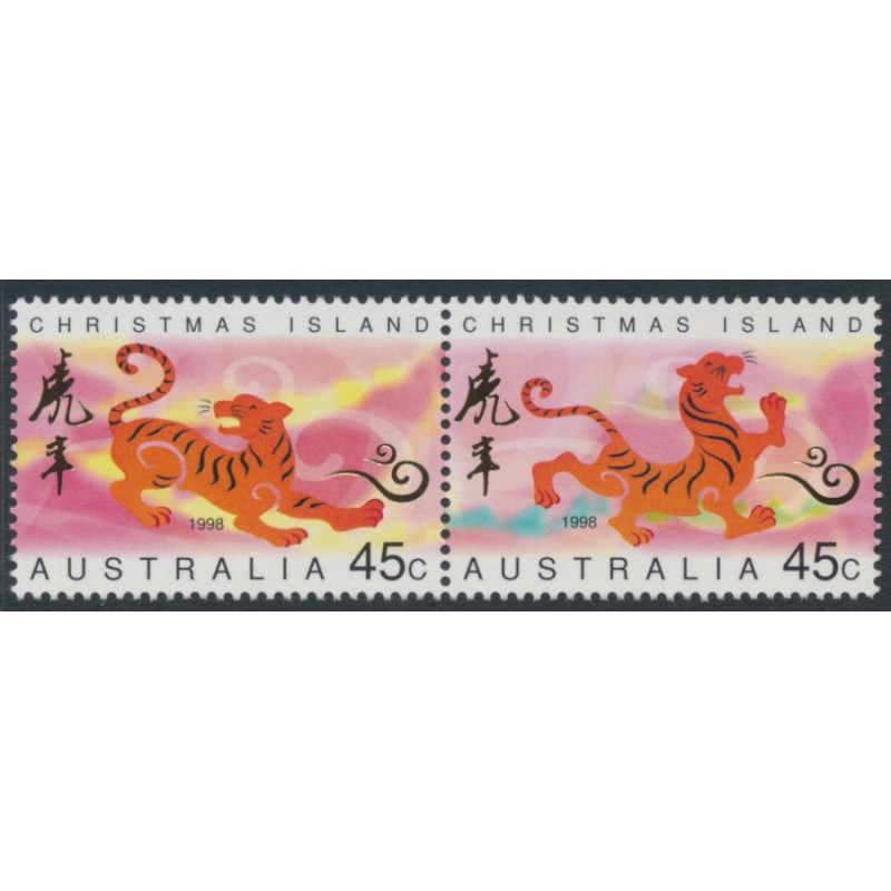 AUSTRALIA / CHRISTMAS ISLAND 1998 45c Chinese Year of the Tiger horizontal se-tenant pair, mint never hinged – no thins, tears or bends. SG Cat. # 440a