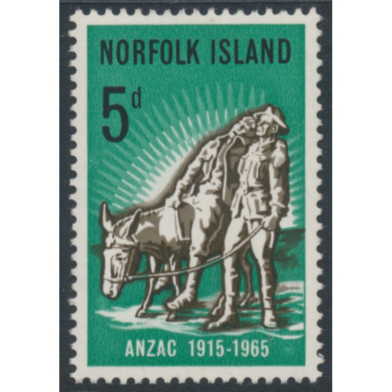 AUSTRALIA / NORFOLK ISLAND 1965 5d black/green ANZAC, mint never hinged – no thins, tears or bends. SG Cat. # 58