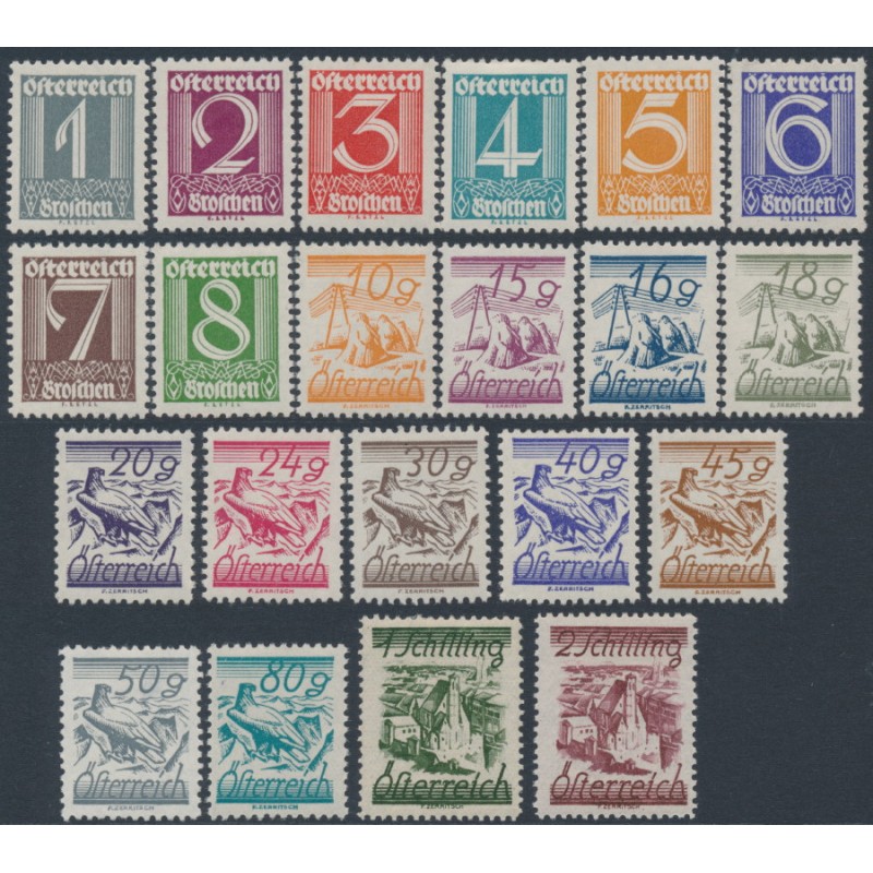 AUSTRIA / ÖSTERREICH 1925 1g to 2S Currency Reform set of 21, mint hinged – the 50g value has a thin, otherwise sound. Michel Cat. # 447-467
