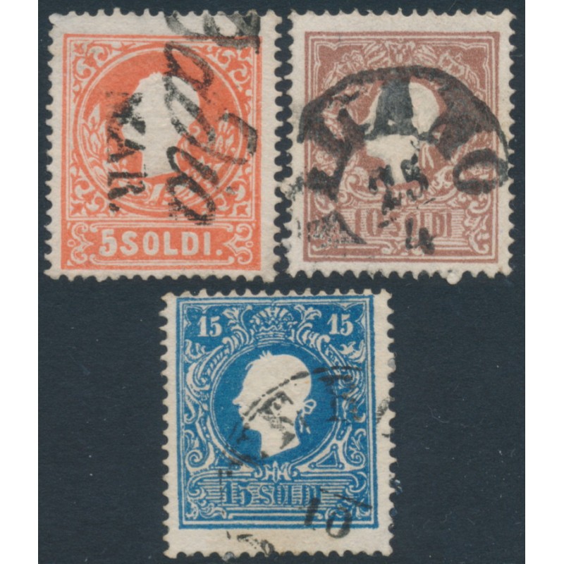 AUSTRIA - 1859 5So-15So Emperor, type II, Lombardy-Venice, used – Michel # 9II-11II