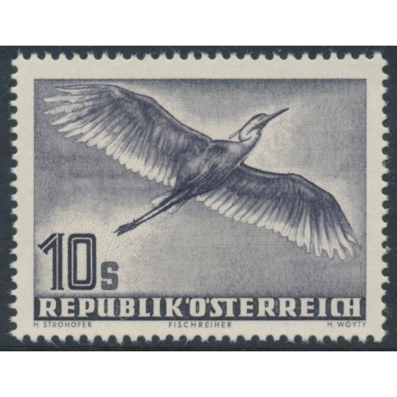 AUSTRIA / ÖSTERREICH 1953 10S deep violet-grey Bird airmail, mint never hinged – no thins, tears or bends. Michel Cat. # 987