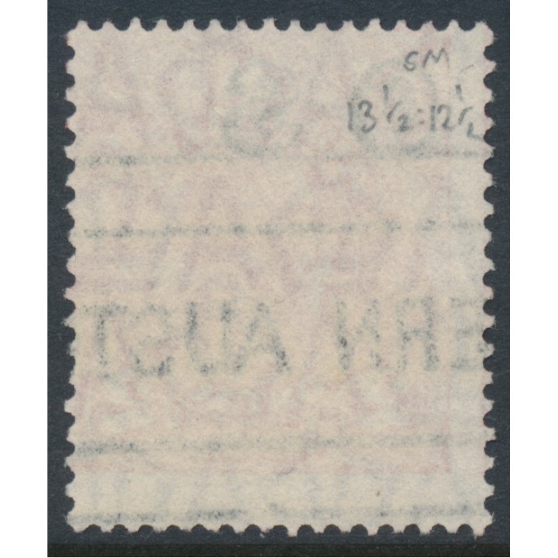 AUSTRALIA - 1932 2d red KGV, SM wmk, o/p OS, misplaced perfs. & overprint, used – ACSC # 102A(OS)