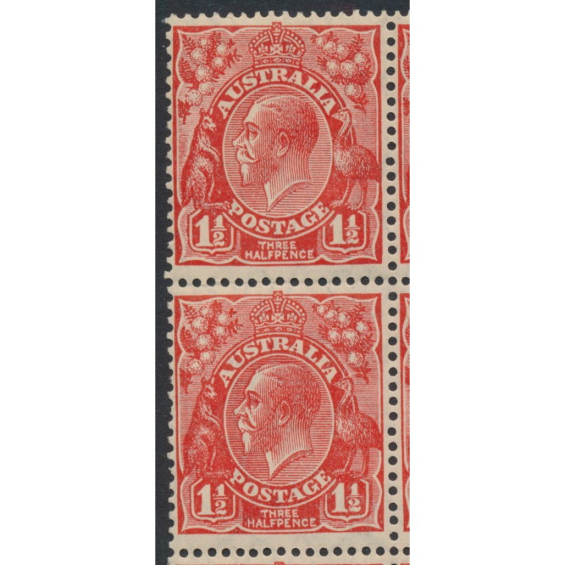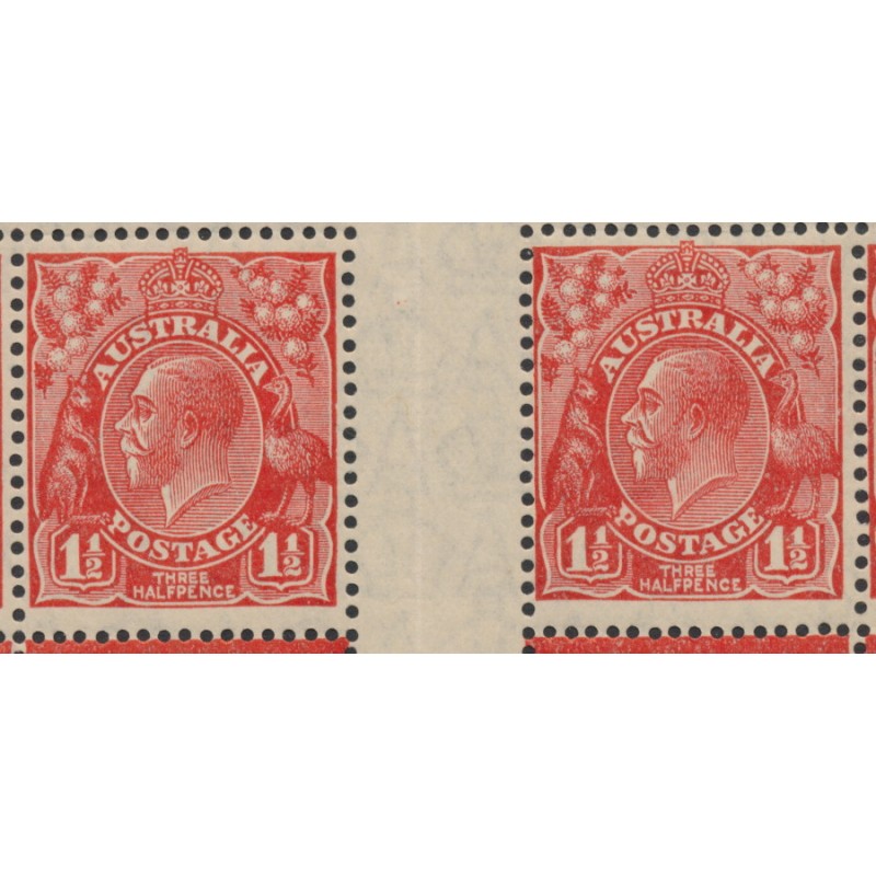 AUSTRALIA - 1927 1½d red KGV, Ash imprint B/12 with varieties, MH – ACSC # 92H(4)zd+(4)fb