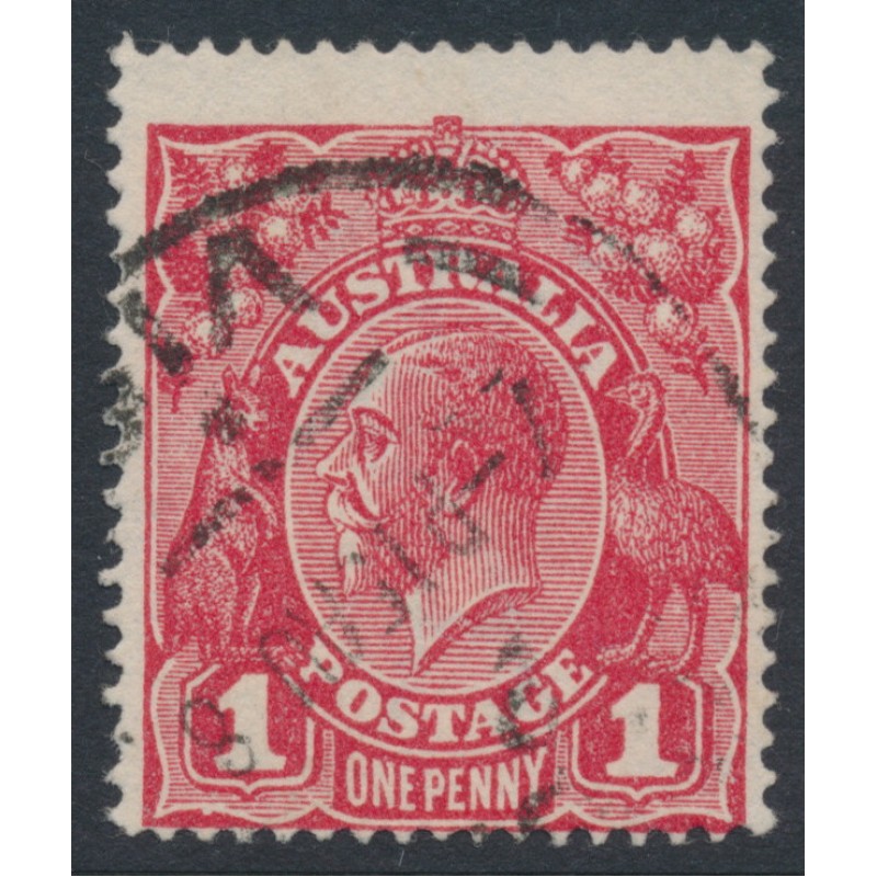 AUSTRALIA - 1918 1d red (die III) KGV (G109), 'flaw in lower frame', used – ACSC # 75Af