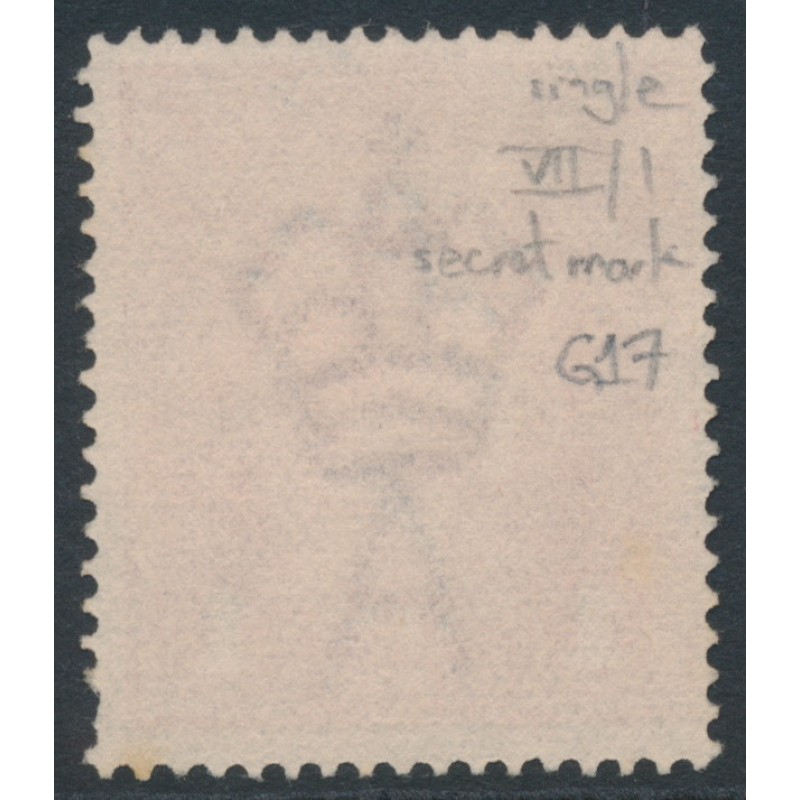 AUSTRALIA 1915 1d scarlet-red KGV Head (shade = G17), has the variety ‘secret mark’ [position = VII/1], used – no thins, tears or bends. BW(ACSC) Cat. # 71G(4)d