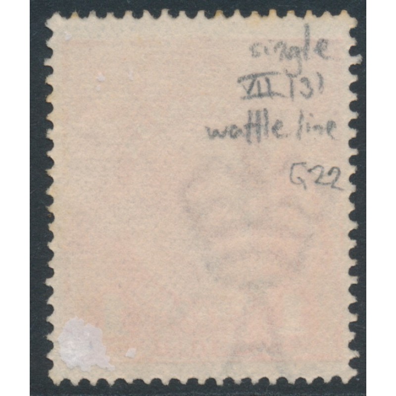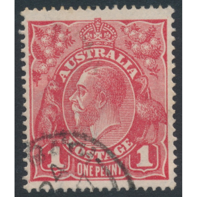 AUSTRALIA 1917 1d rose-carmine KGV Head (shade = G22), has the variety ‘wattle line’ [position = VII/31], used – no thins, tears or bends. BW(ACSC) Cat. # 71L(4)f