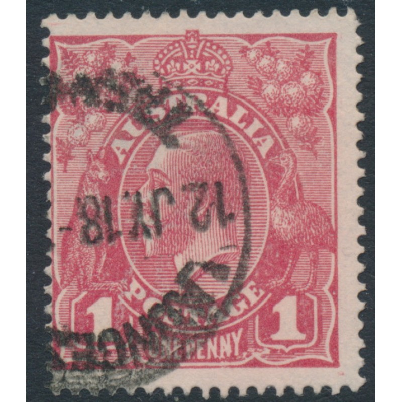 AUSTRALIA 1918 1d carmine-rose KGV Head (shade = G30), has the variety ‘PENAVY’ [position = III/23], used – no thins, tears or bends. BW(ACSC) Cat. # 71V(2)d