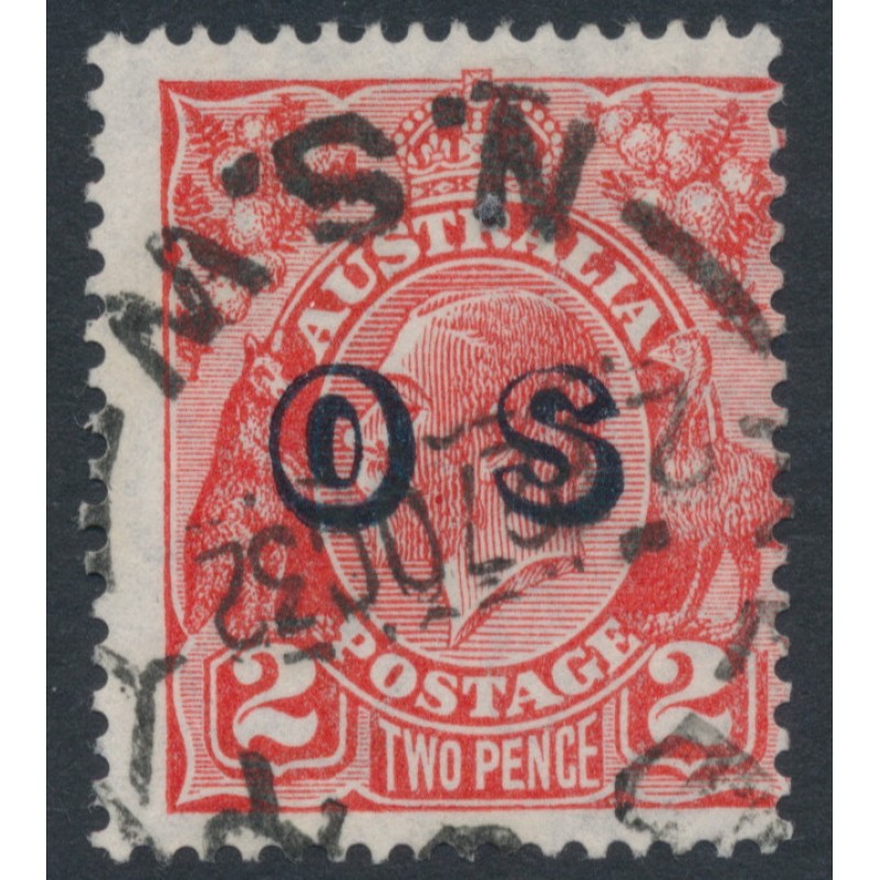 AUSTRALIA - 1932 2d red KGV, CofA watermark, misplaced OS o/p, used – ACSC # 103A(OS)