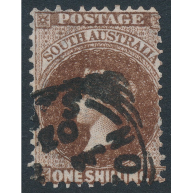 AUSTRALIA / SOUTH AUSTRALIA / S.A. 1901 1/- dark brown Queen Victoria Diadem, perf. 11½:11½, crown SA watermark, used – no thins, tears or bends. SG Cat. # 147