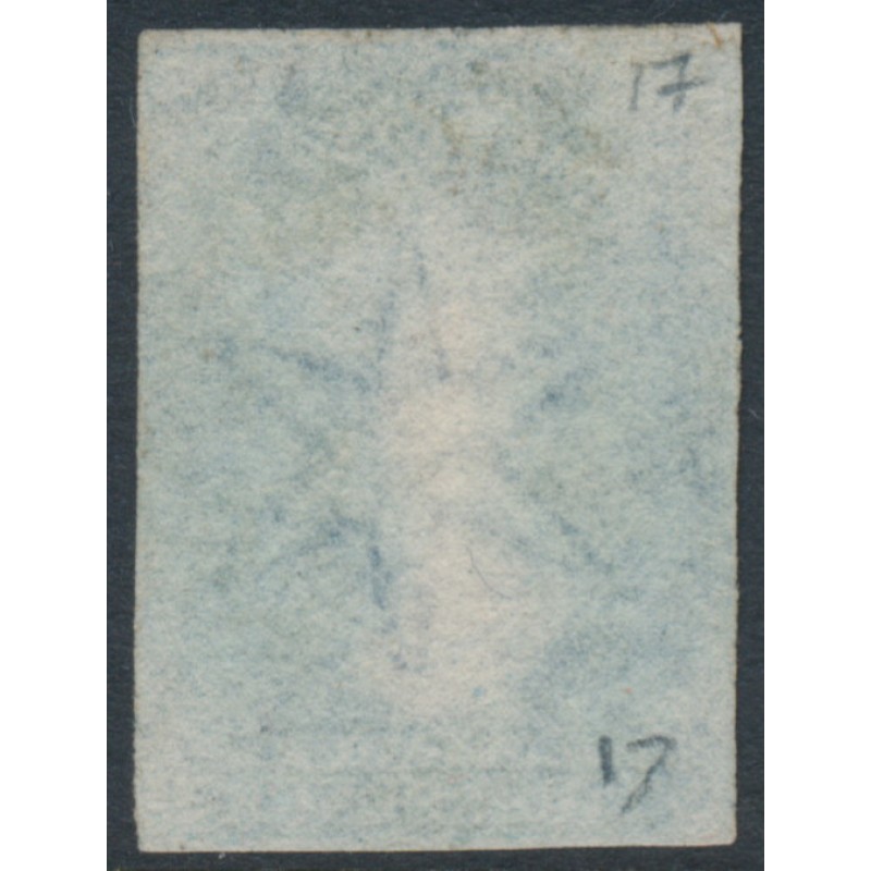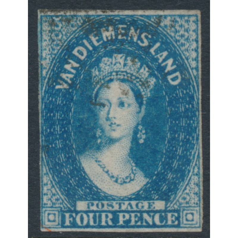 AUSTRALIA / TAS - 1855 4d deep blue Chalon, imperf., large star watermark, used – SG # 17