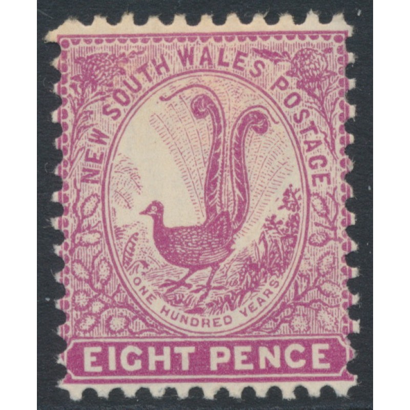 1899 8d magenta Lyrebird, chalk-surfaced paper, perf. 12:11½, crown NSW watermark (SG type = W40), mint hinged – no thins, tears or bends.