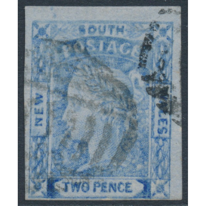 AUSTRALIA / NSW - 1851 2d chalky blue Laureates, imperf., no watermark, used – SG # 53