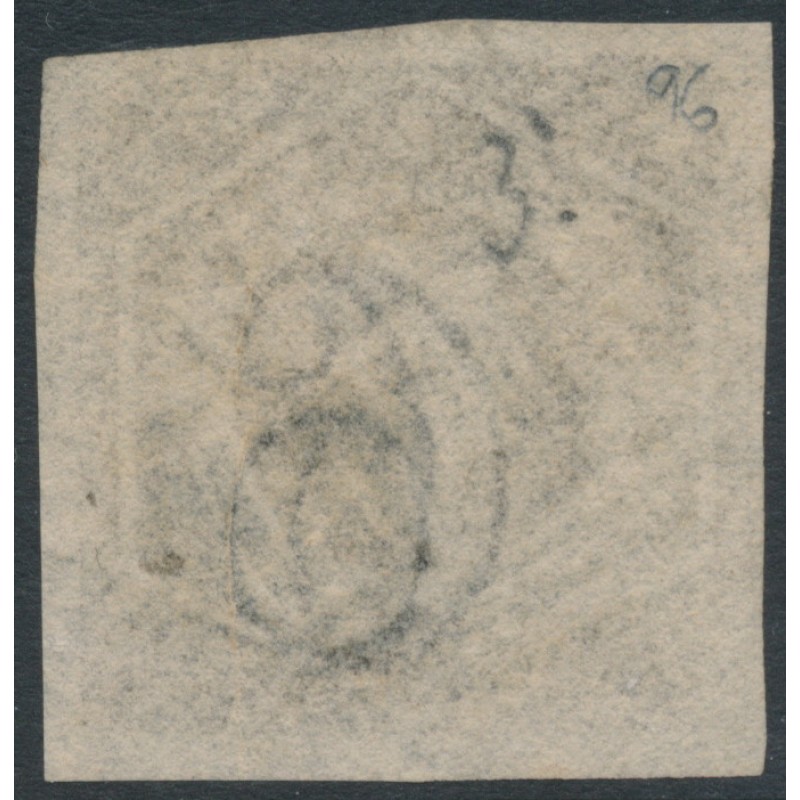 AUSTRALIA / NEW SOUTH WALES / N.S.W. 1854 6d greyish brown Queen Victoria Diadem, imperforate, ‘6’ watermark, used – no thins, tears or bends. SG Cat. # 96