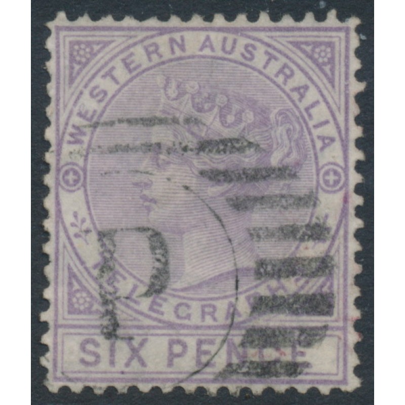 AUSTRALIA / WESTERN AUSTRALIA / W.A. 1879 6d lilac Telegraph Stamp, perf. 14:14, crown CC watermark, postally used – no thins, tears or bends. SG Cat. # T2