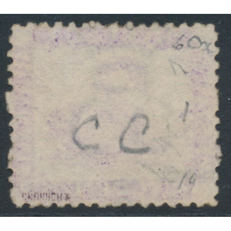 1875 6d mauve Swan, perf. 12½:12½, upright reversed crown CC watermark, used – no thins, tears or bends.