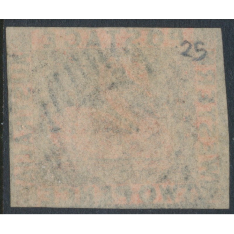 AUSTRALIA / WESTERN AUSTRALIA / W.A. 1860 2d orange-vermilion Swan, imperforate with sideways swan watermark, used – no thins, tears or bends. SG Cat. # 25